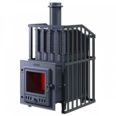 Печь для бани серии Гроза Ураган - расширенный комплект печи в сетке. Максимально приближенный вариант печи для режимов русской парной, имеющий непосредственно закрытую чугунным коробом каменку, дверцу для пара с ручкой из бука, увеличенную до 50см чугунную стартовую трубу.  Печь легко модернизируется до полноценной печи предназначенной для Русской бани путем замены стальной сетки на каменную облицовку без демонтажа дымохода. Модель Гроза Ураган выполнена на базе печей серии Гроза - экономичная модель для частного применения. Основной принцип работы печи сохранён – получение пара с теплоёмкой каменки прямого нагрева. Каменка является сводом топки, нагревается с нижней поверхности снабженной теплосъемными шипами для увеличения контакта с пламенем.Банная печь Гроза 18М Ураган с максимальным объемом парной 18 м3 и диаметром дымохода 115 мм можно купить в интернет-магазине Печи-Онлайн в Красноярске с доставкой по всей России. Чтобы оформить заказ по выгодной цене 94300 руб. с гарантией оставьте заявку или позвоните нам по телефону 8 (800) 505-21-32 . Стоимость монтажа уточняйте у менеджера.
