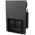 В подъемную дверцу вставлено стекло из жаропрочной стеклокерамики, через которое можно любоваться игрой живого пламени и следить за сгоранием дров.