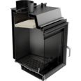 Каминная топка Kratki Eryk изготовлена из литого чугуна, толщиной 8 мм, внешние стенки усилены ребрами, которые увеличивают теплонакопление топки и вместе с тем снимают излишки термической нагрузки на стенки топки. Стыки между стеклом и чугуном, а также между дверцей и топочной камерой уплотнены графитовым шнуром. Первичная подача воздуха в топку направляется ручкой зольника. Поворотная шиберная заслонка управляет тягой в дымоходе. Встроенная система обдува стекла препятствует оседанию сажи.