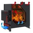 16. Наружные теплоотдающие поверхности печи, включая дверцу, охвачены кожухом-конвектором, который экранирует пожароопасное инфракрасное излучение, исходящее от них, в результате чего, создаются конвекционные потоки, динамично прогревающие отапливаемое помещение.