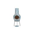 Костровый очаг принесет мерцающий свет, тепло и классический стиль в ваш внутренний дворик или любое другое открытое пространство. Этот поразительный уличный камин имеет полосатый глиняный корпус и дымоход, отделанный вручную синим цветом. Он установлен  на прочной раме. Он станет сказочной центральной точкой для любого события.